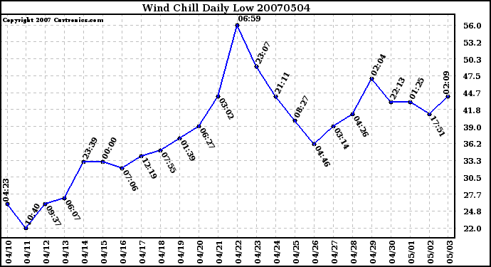 Milwaukee Weather -- 20070504 Wind Chill Daily Low -- From curtronics.com by Curt Blank