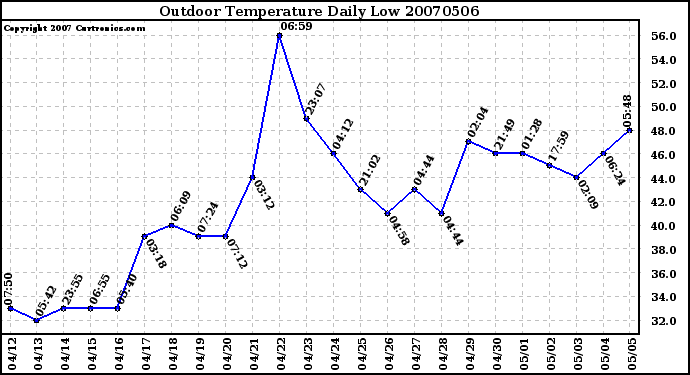 Milwaukee Weather -- 20070506 Outdoor Temperature Daily Low -- From curtronics.com by Curt Blank
