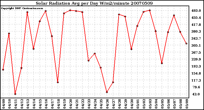 20070509 Solar Radiation Avg per Day W/m2/minute