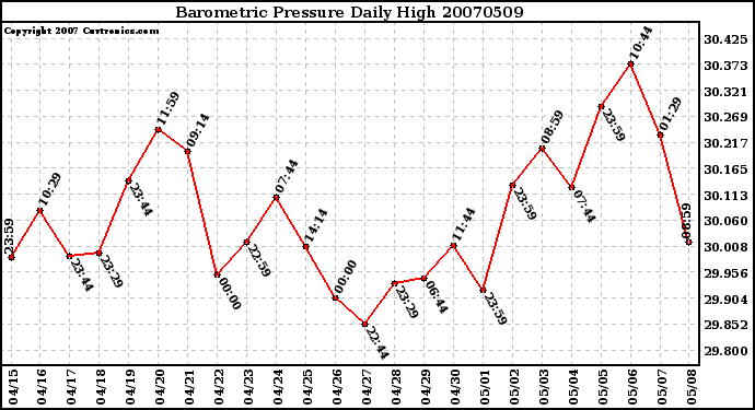 Milwaukee Weather -- 20070509 Barometric Pressure Daily High -- From curtronics.com by Curt Blank
