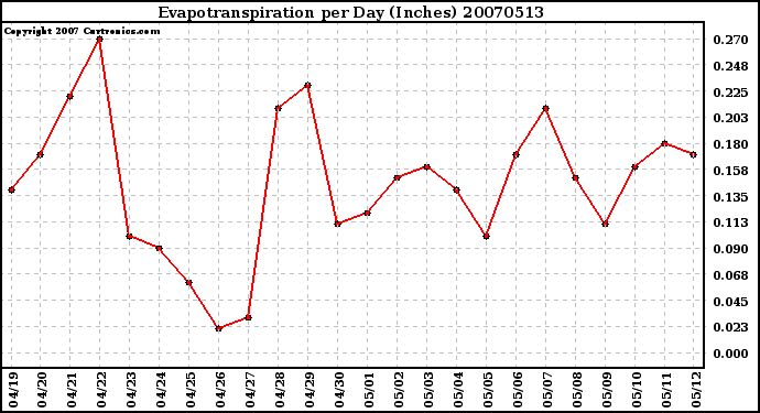 Milwaukee Weather -- 20070513 Evapotranspiration per Day (Inches) -- From curtronics.com by Curt Blank