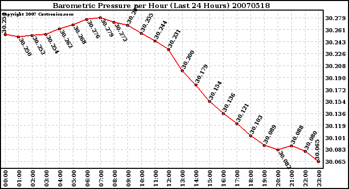 20070518 Barometric Pressure per Hour (Last 24 Hours)