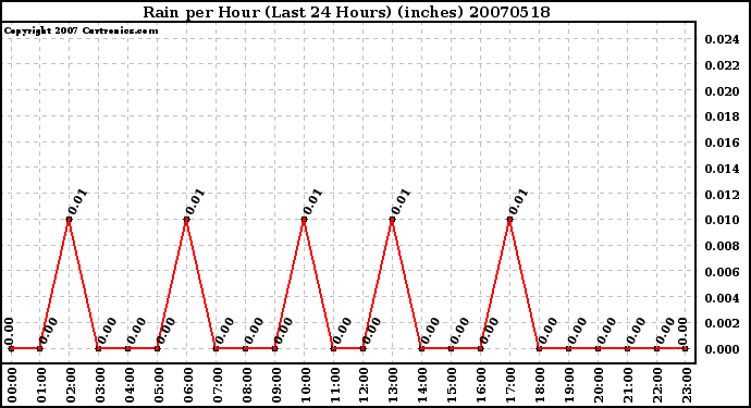Milwaukee Weather -- 20070518 Rain per Hour (Last 24 Hours) (inches) -- From curtronics.com by Curt Blank