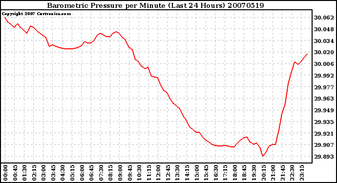 Milwaukee Weather -- 20070519 Barometric Pressure per Minute (Last 24 Hours) -- From curtronics.com by Curt Blank