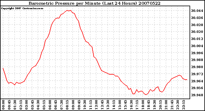 Milwaukee Weather -- 20070522 Barometric Pressure per Minute (Last 24 Hours) -- From curtronics.com by Curt Blank