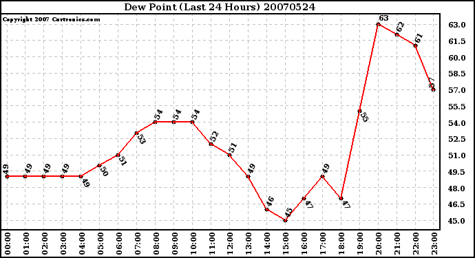 Milwaukee Weather -- 20070524 Dew Point (Last 24 Hours) -- From curtronics.com by Curt Blank
