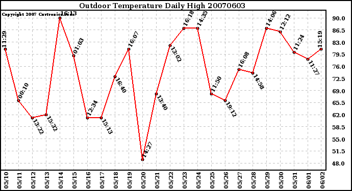 Milwaukee Weather -- 20070603 Outdoor Temperature Daily High -- From curtronics.com by Curt Blank