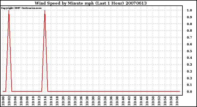 20070613 Wind Speed by Minute mph (Last 1 Hour)