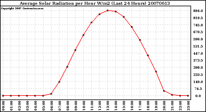 Milwaukee Weather -- 20070613 Average Solar Radiation per Hour W/m2 (Last 24 Hours) -- From curtronics.com by Curt Blank