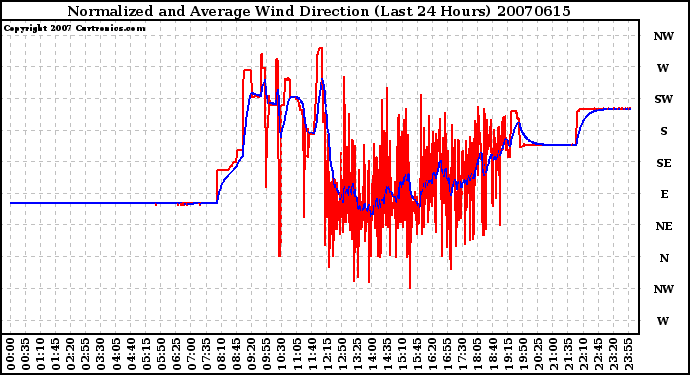 20070615 Normalized and Average Wind Direction (Last 24 Hours)