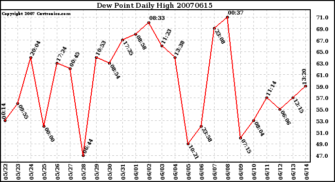 Milwaukee Weather -- 20070615 Dew Point Daily High -- From curtronics.com by Curt Blank