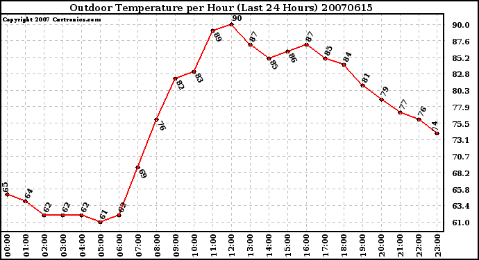 Milwaukee Weather -- 20070615 Outdoor Temperature per Hour (Last 24 Hours) -- From curtronics.com by Curt Blank