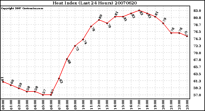 Milwaukee Weather -- 20070620 Heat Index (Last 24 Hours) -- From curtronics.com by Curt Blank