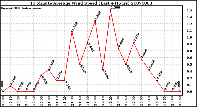 20070803 10 Minute Average Wind Speed (Last 4 Hours)