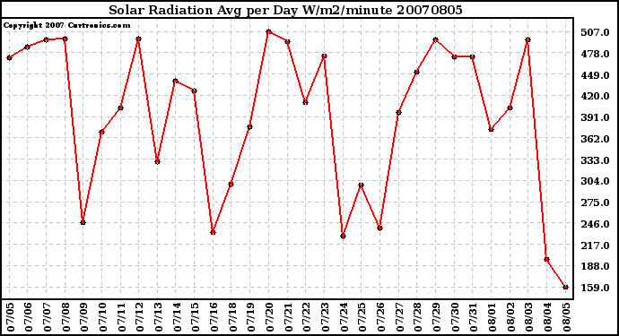 20070805 Solar Radiation Avg per Day W/m2/minute
