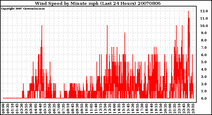 20070806 Wind Speed by Minute mph (Last 24 Hours)