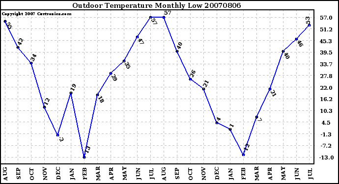 Milwaukee Weather -- 20070806 Outdoor Temperature Monthly Low -- From curtronics.com by Curt Blank