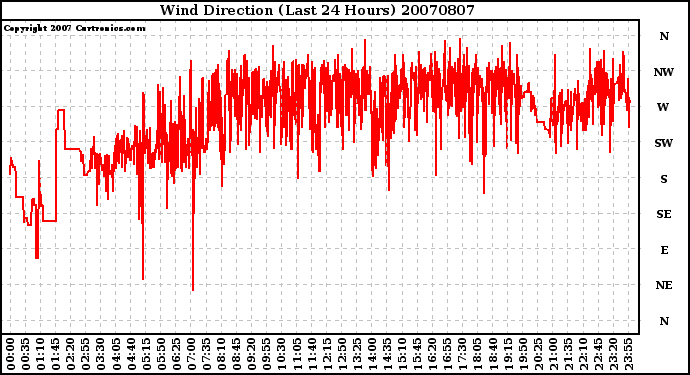 Milwaukee Weather -- 20070807 Wind Direction (Last 24 Hours) -- From curtronics.com by Curt Blank