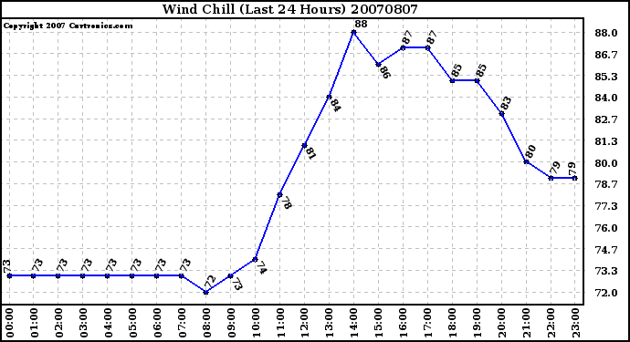 Milwaukee Weather -- 20070807 Wind Chill (Last 24 Hours) -- From curtronics.com by Curt Blank