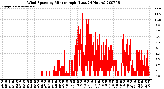 20070811 Wind Speed by Minute mph (Last 24 Hours)