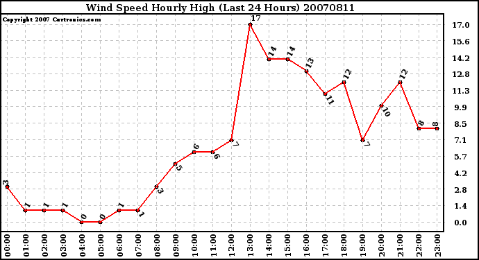 20070811 Wind Speed Hourly High (Last 24 Hours)