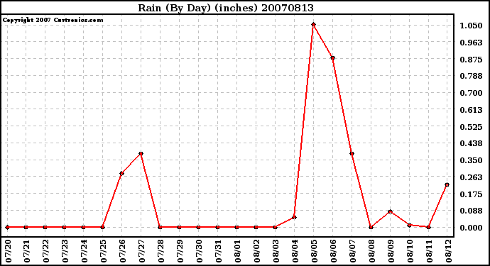Milwaukee Weather -- 20070813 Rain (By Day) (inches) -- From curtronics.com by Curt Blank