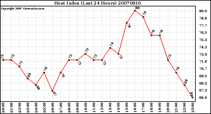 Milwaukee Weather -- 20070816 Heat Index (Last 24 Hours) -- From curtronics.com by Curt Blank