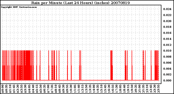 Milwaukee Weather -- 20070819 Rain per Minute (Last 24 Hours) (inches) -- From curtronics.com by Curt Blank