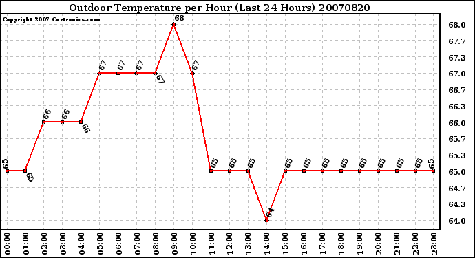 Milwaukee Weather -- 20070820 Outdoor Temperature per Hour (Last 24 Hours) -- From curtronics.com by Curt Blank