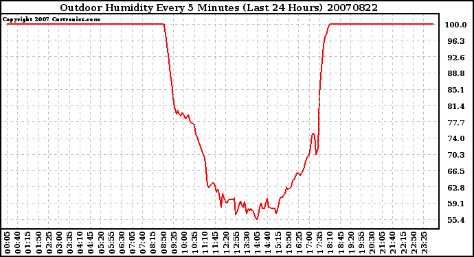20070822 Outdoor Humidity Every 5 Minutes (Last 24 Hours)