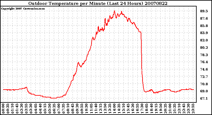 20070822 Outdoor Temperature per Minute (Last 24 Hours)