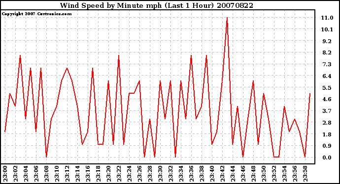 Milwaukee Weather -- 20070822 Wind Speed by Minute mph (Last 1 Hour) -- From curtronics.com by Curt Blank