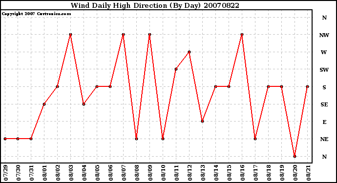 Milwaukee Weather -- 20070822 Wind Daily High Direction (By Day) -- From curtronics.com by Curt Blank