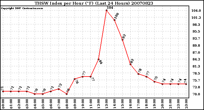 20070823 THSW Index per Hour (°F) (Last 24 Hours)