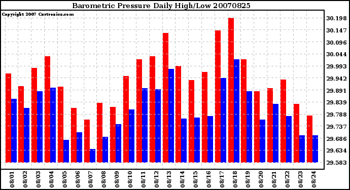 Milwaukee Weather -- 20070825 Barometric Pressure Daily High/Low -- From curtronics.com by Curt Blank