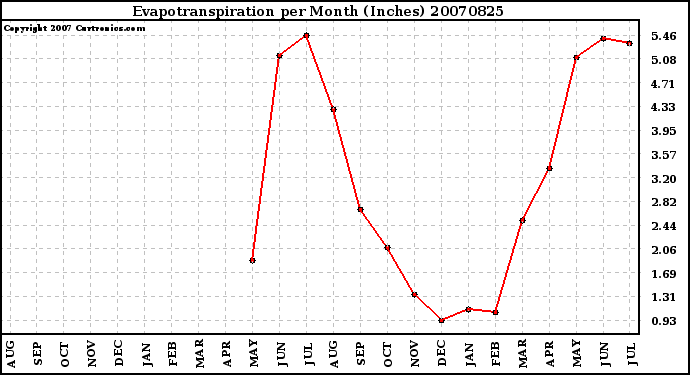 Milwaukee Weather -- 20070825 Evapotranspiration per Month (Inches) -- From curtronics.com by Curt Blank