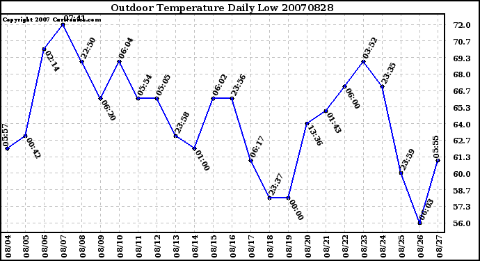 Milwaukee Weather -- 20070828 Outdoor Temperature Daily Low -- From curtronics.com by Curt Blank