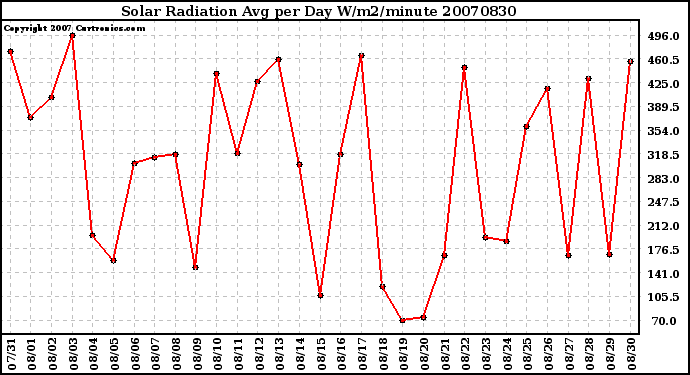 20070830 Solar Radiation Avg per Day W/m2/minute