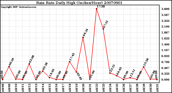 Milwaukee Weather -- 20070901 Rain Rate Daily High (Inches/Hour) -- From curtronics.com by Curt Blank