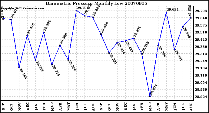 20070905 Barometric Pressure Monthly Low