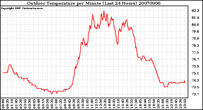 Milwaukee Weather -- 20070906 Outdoor Temperature per Minute (Last 24 Hours) -- From curtronics.com by Curt Blank