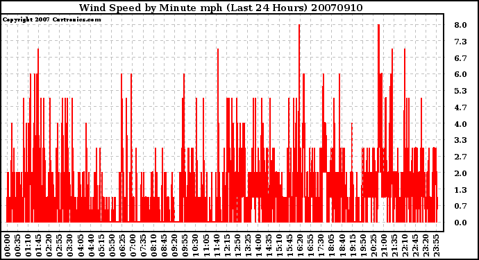Milwaukee Weather -- 20070910 Wind Speed by Minute mph (Last 24 Hours) -- From curtronics.com by Curt Blank