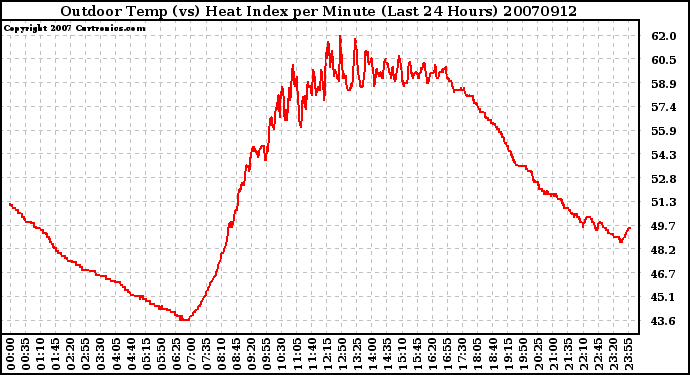 Milwaukee Weather -- 20070912 Outdoor Temp (vs) Heat Index per Minute (Last 24 Hours) -- From curtronics.com by Curt Blank