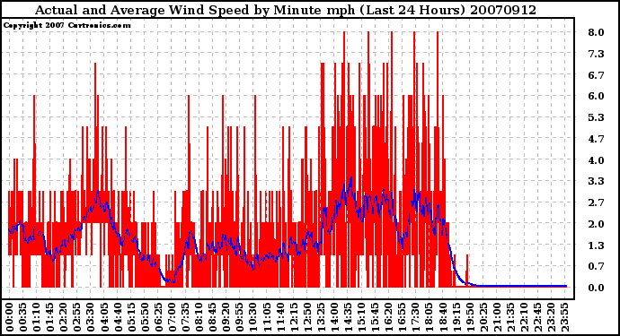 20070912 Actual and Average Wind Speed by Minute mph (Last 24 Hours)