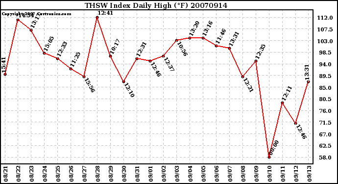 20070914 THSW Index Daily High (°F)