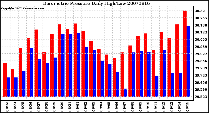 Milwaukee Weather -- 20070916 Barometric Pressure Daily High/Low -- From curtronics.com by Curt Blank