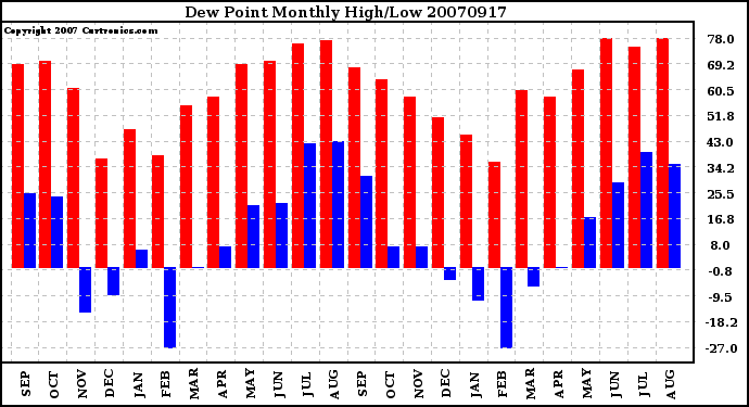20070917 Dew Point Monthly High/Low