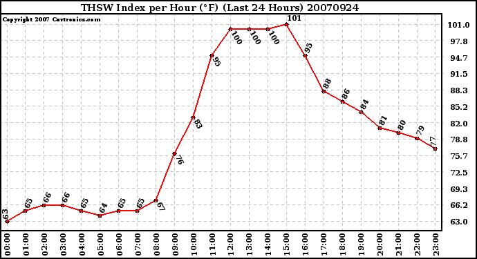 Milwaukee Weather -- 20070924 THSW Index per Hour (°F) (Last 24 Hours) -- From curtronics.com by Curt Blank