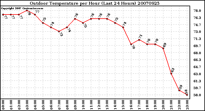 Milwaukee Weather -- 20070925 Outdoor Temperature per Hour (Last 24 Hours) -- From curtronics.com by Curt Blank