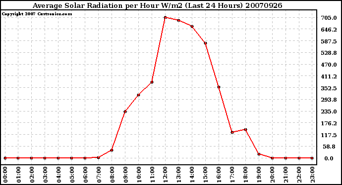 20070926 Average Solar Radiation per Hour W/m2 (Last 24 Hours)